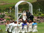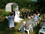 outdoor wedding area is a one half acre lawn which slopes gently toward the