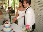 Our Ballroom is forty feet wide by almost 100 feet long. We can comfortable handle groups of up to 200 seated guests. This still allows an area for a dance floor, DJ and Wedding Cakes. Our Garden Wedding easily handles 200 guests. |