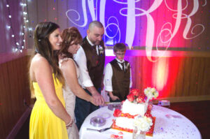 There is no reason to go anywhere else after your wedding. You can have your reception in the ballroom of Sunshine Hollow's giant reception hall, enjoy a delicious buffet meal, and even have your wedding and groom's cakes prepared by Sunshine Hollow.