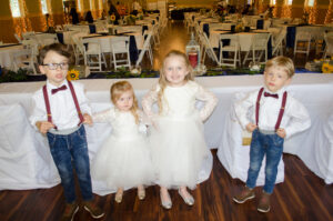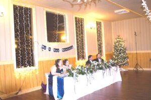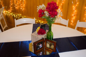 With room for up to 150 guests, the ballroom in our Event Center's reception hall is the perfect place for your wonderful wedding reception. You may have a bride and groom table or a wedding party head table. Set up the room for a dance floor if you wish. Bring a DJ or musicians and you are welcome to use our portable sound system. If we cater your reception we furnish all the tables, linens, and chairs and we set up the ballroom as you wish.